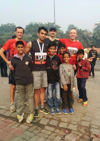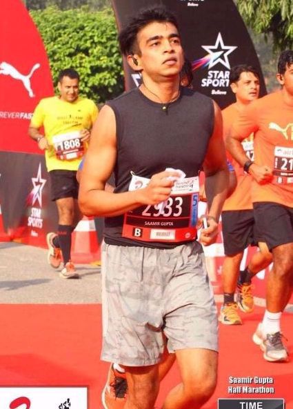 Left-Right: Saamir during the half marathon in 2016. Saamir with the other participants. |
